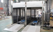 2、外形尺寸:寬4700*高2850*深13900mm,箱體內(nèi)可同時平排進三臺推車,烘烤時間可獨立設置(見附圖);上料區(qū)長1500mm,設有上料斜坡,便于推車進入緩沖區(qū);兩端緩沖區(qū)各長1700mm,各設有升降平臺,便于推車進出烘烤,爐蓋上加裝0.75KW高溫抽風風機;烘干區(qū)長7620mm,烘干區(qū)前后裝有隔熱卷閘門,加裝感應器,底部設有傳送鏈條;下料區(qū)長1500mm, 加裝斜坡 ,以便推車出料。